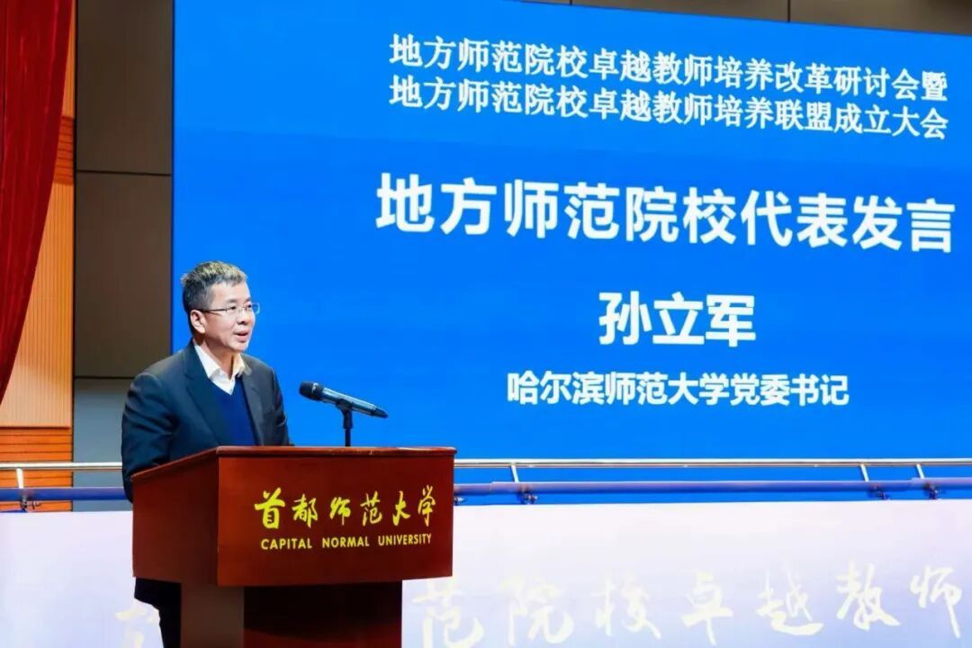 12月12日,全国地方师范院校卓越教师培养改革研讨会在北京召开,“地方师范院校卓越教师培养联盟”正式成立。我校党委书记孙立军受邀参加,并作为地方师范院校代表进行发言。