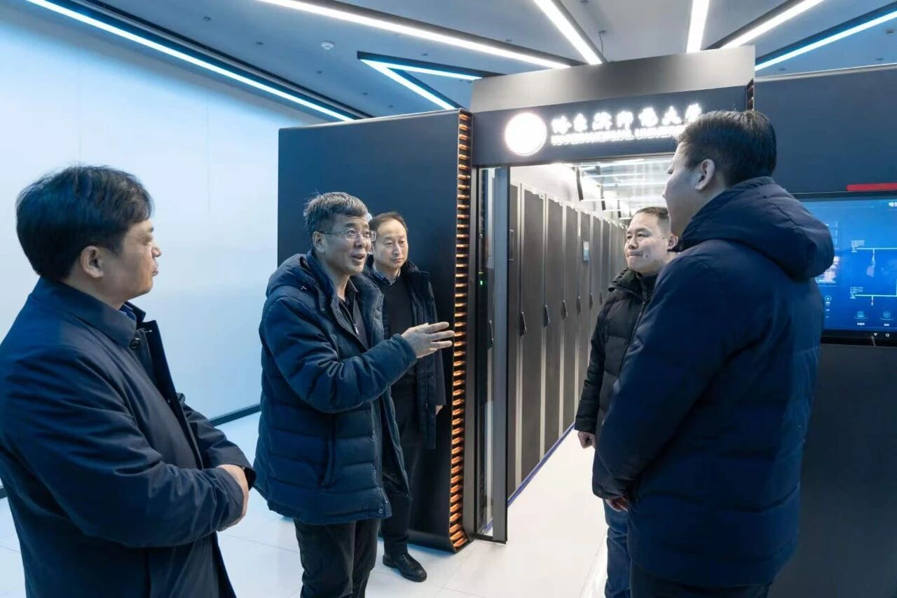 在融慧楼,学校领导深入数据中心、超算中心、主机房,以及光电带隙材料教育部重点实验室、寒区牧草种质资源挖掘与利用中心、脑电眼动实验室等区域,详细了解各中心及实验室的设备运行及日常管理情况。每到一处,学校领导都与现场负责人和技术人员亲切交流,认真听取关于科研平台建设、技术应用及成果转化等方面的汇报,并就关键技术的创新突破与未来发展规划进行深入探讨。学校领导对各单位工作给予肯定,并指出融慧楼建设是学校抢抓教育强国建设有利契机,积极争取国家专项资金支持打造的重点工程,是学校优化科研教学资源配置、提升人才培养质量的重要举措。当前,融慧楼已从“建好”转向“用好”的关键阶段,要充分发挥其在学科建设、科研创新和人才培养中的支撑作用,强化人工智能本地化部署,反向赋能科研组织模式重构、学科交叉融合深度革新,以国家所需、龙江所要、师大所能为战略支点加强前沿研究与成果转化,真正将融慧楼打造成学校“国内一流师范大学”建设的战略引擎。