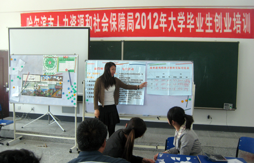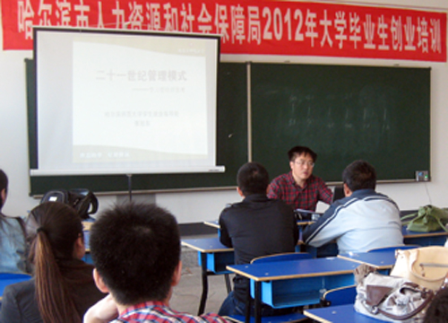 2012年5月10日至23日,我校与哈尔滨市人力资源与社会保障局合作的应届毕业生创业培训工作圆满结束。此次培训面向我校2012届本科毕业生学员举行。培训学员由我校东语学院、西语学院、生命科学与技术学院、社会与历史学院、物理与电子工程学院、音乐学院、美术学院、地理科学学院、数学科学学员、教育科学学院、政法学院、斯拉夫语学院的学生组成。此次创业培训班学员经过问卷调查、面试两个环节选拔后,在316名报名学生中选拔出60名学员为我校首批应届毕业生创业培训班成员。培训班授课内容严格按照国家人力资源和社会保障部关于SIYB创业培训10个模块80学时的教学要求授课,培训教师为国家人力资源和社会保障部认定的SIYB讲师资格教师。学员通过上课指纹出勤率考勤、提交创业计划书等条件审核后,颁发由国家人力资源与社会保障部认定的创业证书,学员凭借此证书在创业过程中可享受国家扶持大学生创业的相关政策。