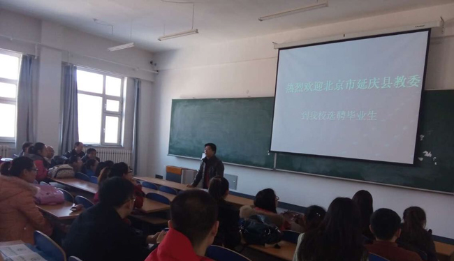 (刘春玲/文)3月11日上午,北京延庆教委前往我校招聘非京生源应届硕士毕业生,参加学生踊跃。由延庆教委和招聘学校组成的考核小组在新教学楼D503对应聘考生进行资格审查和面试考核,现场有包括语文、数学、物理、化学、历史、地理、政治、信息技术等学科共计15人签约。北京延庆教委系我校在精细化市场开发中建立的高端就业基地,延庆教委招聘之行将拉开我校2015年春季招聘会的序幕。