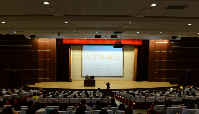 (刘春玲/文)5月14日晚,我校校友、哈三中政治教师何显贵应邀来我校在科学会堂作了主题为《大学加减法》的讲座,讲座从一名政教系毕业生工作十一年成长为政治名师的视角,讲授了作为师范生,在大学四年应该如何做好学业规划的加减法,讲座现场气氛热烈,效果理想。