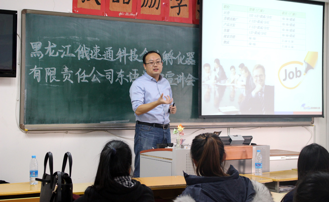 (姜雪娥/文)为加强与省内企业的实习、就业合作,拓宽毕业生就业渠道,12月8日下午,东语学院举办了黑龙江俄速通科技企业孵化器有限责任公司专场招聘宣讲会,东语学院2013级学生参加了本次活动。