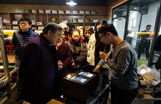 在SIPT创客空间大学生创新创业项目指导中心,创客空间负责人向参观团队介绍了东北农业大学人才培养新模式。在培育创新创业能力、加强创新创业课程、强化创新创业指导、打造“教育、训练、孵化”三位一体创新创业工作体系等方面同参观团队领导进行深入交流。
