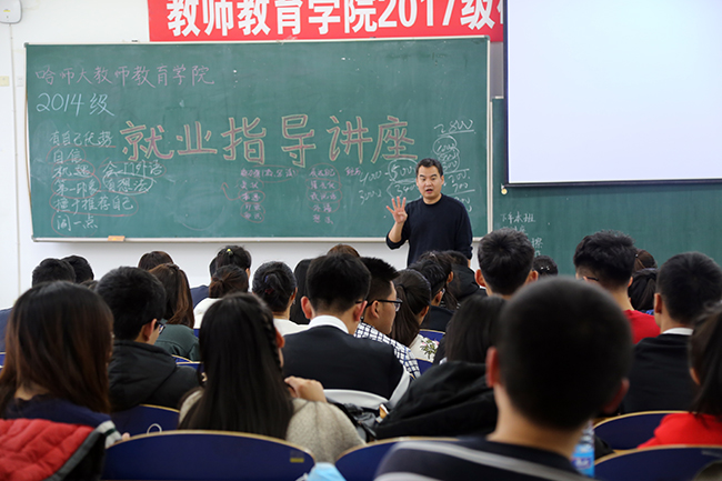 (李志宇/文)为应对当前的就业形势,落实学院就业指导工作计划和相关政策,加强对毕业生就业的指导和帮助,11月28日下午,由教师教育学院举办的2018届毕业生就业指导讲座于崇师楼C区402室举行。此次就业指导讲座特邀学生就业指导处涂德虎老师主讲,教师教育学院副处级辅导员吕会庆、副处级辅导员高军及2018届毕业生参加了此次讲座。