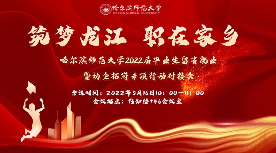(冯亮/文)为进一步开源拓岗,深化校企合作,千方百计确保毕业生高质量就业,5月16日,“筑梦龙江 职在家乡”哈尔滨师范大学2022届毕业生留省就业暨访企拓岗专项行动对接会在线举行。学生就业指导处处长王阿诺,历史文化学院党委书记刘兆华,经济学院党委书记徐振岐,西语学院党委书记王羽,体育科学学院党委副书记冯铁男在行知楼746会议室直播推介毕业生,36家省内企业主要负责人线上参会,会议由学生就业指导处副处长韩方立主持。