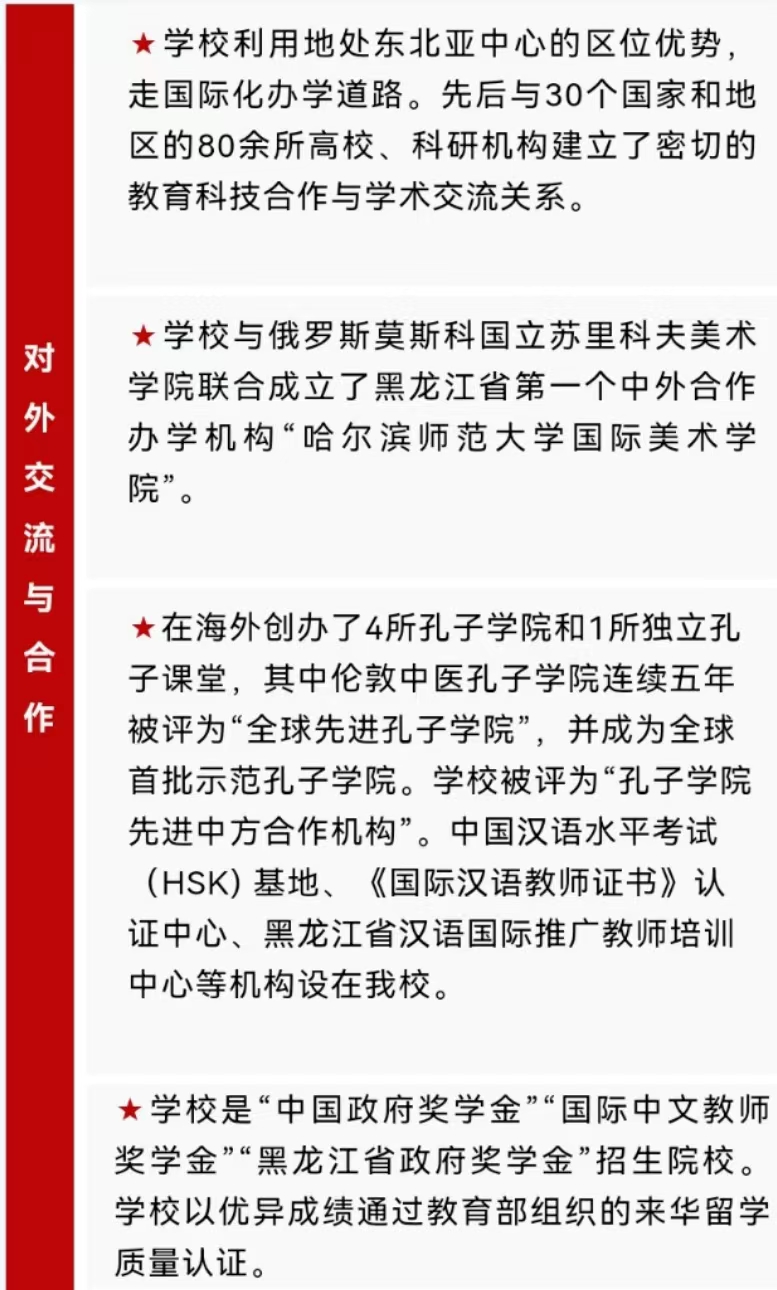 哈尔滨师范大学坐落于素有“冰城夏都”美誉的历史文化名城哈尔滨,是黑龙江省教育、艺术、人文社会科学和自然科学的重要人才培养基地和科学研究基地,是黑龙江省重点建设的高水平大学,是教育部本科教学工作水平评估优秀学校,是教育部“三全育人”综合改革试点高校。学校坚持社会主义办学方向,弘扬以“行知精神”为代表的大学文化,践行“学高为师,身正为范”的从师准则,秉承“敦品励学,弘毅致远”的校训精神,坚持立德树人、提高质量、创新发展。