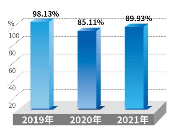 2019—2021学院本科生毕业就业率