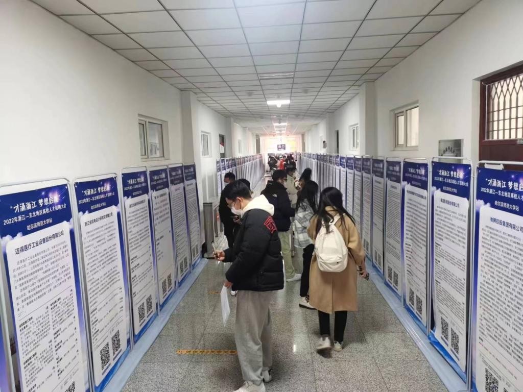 此次活动,共有浙江省11个地市500余家企事业单位参会,推出各类岗位3319余个,需求人数12653人,涉及信息技术、金融、能源化工、建筑、教育等18个行业。活动当天,浙江省人才市场创新开展带岗进校、云端应聘,活动当天现场展示127家与我校专业匹配度高的知名企事业单位海报岗位信息,我校500余名学生现场查看岗位信息,线上扫码投递简历。