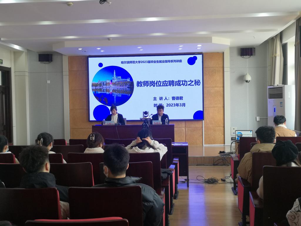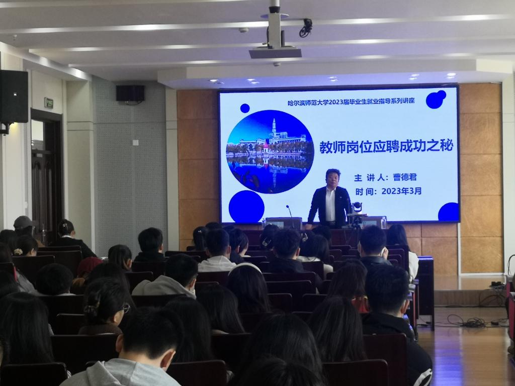 (王军胜/文)为紧抓2023届毕业生求职关键期和窗口期,分层分类实施精准就业指导,学生就业指导处于3月26日上午,邀请尊道师学院创始人、院长,教学综合能力培训导师,衡水学谷高中高复校长、衡水桃李教育集团总裁、衡水桃李中学总校长曹德君为2023届毕业生做题为《教师岗位应聘成功之秘》专题就业指导讲座。学生就业指导处副处长王清艳主持本次讲座,讲座通过线下与线上相结合的方式进行。