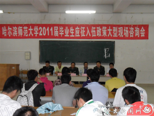 为解决我校毕业生在应征入伍过程中存在的疑问和大学生对应征入伍政策理解上的困扰,5月30日下午,我校邀请了呼兰区武装部与校学生就业指导处、保卫处共同召开了2011届毕业生应征入伍政策大型咨询会。