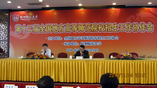 11月4日至5日,第十二届全国地方高等师范院校招生工作研讨会在杭州师范大学召开。杭州师范大学、重庆师范大学、云南师范大学等11所大学的主管校领导出席了大会,共有全国近百所师范院校的招生处长(主任)参加了本次大会。
