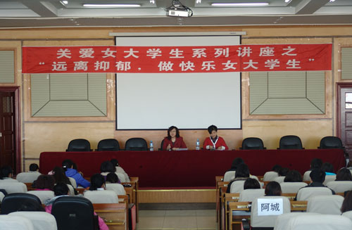3月8日中午,一场名为“远离抑郁,学会做快乐女大学生”的讲座在图书馆报告厅举行,邀请到了黑龙江省女性学研究会理事长王宇教授为大家主讲,讲座现场座无虚席,同学们专注地聆听感悟,不时发出阵阵掌声。生命科学与技术学院的学生赵实表示:“这次讲座贴近女大学生的实际生活,使我们在心理调节方面受益良多”。在报告厅的外面,由校学生会主办的“女生节”签名仪式也在进行,广大女大学生们纷纷在条幅上留下自己的节日祝愿。而男同学们也行动起来,通过图书馆前的两块留言板,向身边的女同学送去最诚挚的祝福。
