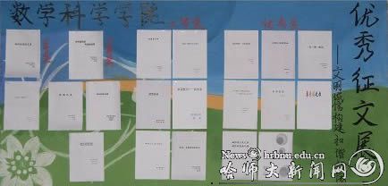 为了展现数学科学学院学生的德育素质和诚信观念,学院于3月30日举办了以“文明诚信,构建和谐校园”为主题的征文活动。在08级学生的积极参与下,活动最终评出一等奖2名,二等奖4名,三等奖6名,优秀奖若干。获奖作品现正在数学楼大厅展览。