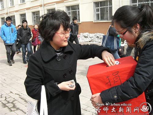 继3月30日西语学院学生团工委在学院内部举办“捐献一瓶水,奉献一份爱”大型募捐活动之后,4月1日中午,学院团工委公益部在学生第二食堂门口开展校园募捐活动,旨在尽自己最大的努力为南方旱区争取更多的捐款。募捐当天温度较低,风力较大,但工作人员们都不顾天气的恶劣,热情地号召过往的学生为灾区奉献一份爱心。学生们自发捐款,并在条幅上签字。