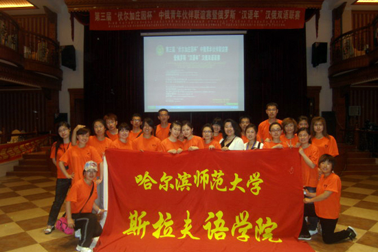 6月5-6日斯拉夫语学院代表哈尔滨师范大学参加了第三届“伏尔加庄园杯”中俄青年伙伴联谊赛暨俄罗斯“汉语年”汉俄双语联赛。本届“联赛”由中共黑龙江省委对外宣传办公室、黑龙江省人民政府新闻办公室主办,黑龙江省对外文化交流协会、哈尔滨市旅游局、哈尔滨市人民对外友好协会、中国伙伴杂志社、智库传媒联合承办。参赛单位有来自大连外国语学院,哈尔滨师范大学、黑龙江科技学院、黑河学院、牡丹江大学、长春大学、黑龙江大学等17所院校近240名中俄青年选手分成37个小组参加了全部的室内语言交流和户外的联谊比赛项目。独特的户外联谊和室内交流形式,使中俄学生结下了深厚的友谊,哈师大学生通过充分的校园文化展示和才艺表演展现了良好精神面貌。斯拉夫语学院学生以扎实的专业基础和较强团队意识最终获得大赛第四名。