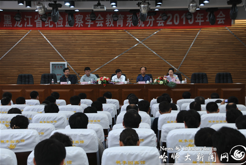 6月21日上午,由我校承办的黑龙江省纪检监察学会教育系统分会2010年年会在我校梦溪宾馆召开。学会会长、我校党委书记张少杰,副会长康宝林,副会长、省委高校工委副书记、高校纪工委书记、省纪委驻省教育厅纪检组组长李东明,我校党委常委、纪委书记蒋晶洁,省委高校纪工委副书记、省纪委驻教育厅纪检组副组长、省监察厅驻教育厅监察室主任谢功臣出席会议,学会理事会成员,各高校、省教育厅直属单位、各市(行署)教育局、高校附属临床医学院纪检监察部门负责同志参加会议。会议由副会长、哈尔滨市教育局党委副书记、纪委书记闫生主持。