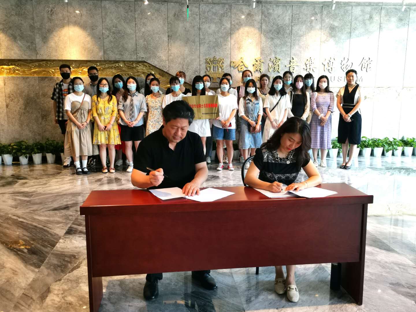 (徐伟伟/文)为落实立德树人根本任务,传承龙江优秀精神,构建“三全育人”大格局,实现思政教育与专业教育的协同推进,2021年6月24日,西语学院与哈尔滨音乐学院举行了志愿服务协议签订仪式和志愿服务基地揭牌仪式,哈尔滨音乐博物馆馆长苗笛、馆长吴司、西语学院副院长王晓丹出席了仪式,并共同为2020级的22名翻译专业硕士学生上了一堂特殊的外宣翻译课。