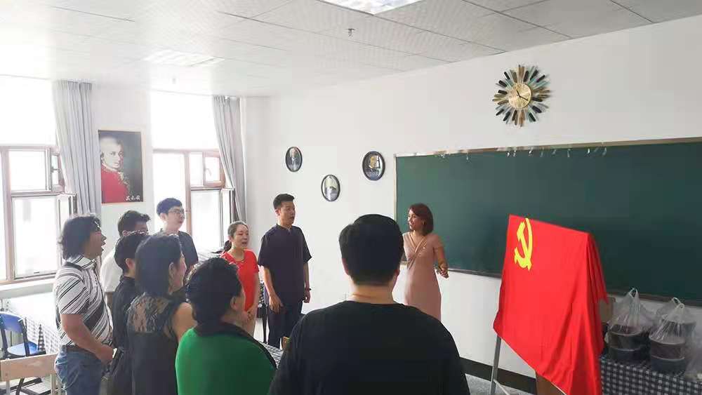 (杨娟娟/文)1921年—2021年,伟大的中国共产党走过了辉煌的100年,100载峥嵘岁月,100年风雨征程。在中国共产党成立100周年之际,声乐党支部举办主题党日活动——重温入党誓词、演唱革命歌曲,为伟大的中国共产党庆祝生日。