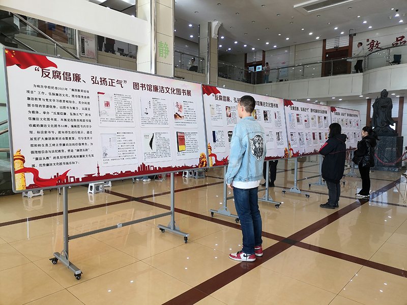 (韩振刚/文)为进一步加强廉洁文化教育,结合学校纪委2021年“廉洁教育活动项目”,积极开展党风廉政建设宣传教育工作,图书馆党委于10月25日起在江北图书馆一楼大厅举办“反腐倡廉、弘扬正气”廉洁文化主题图书展。
