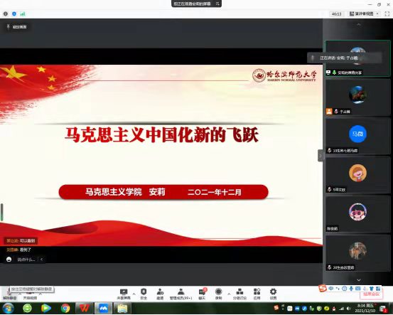 (安欧亚、华亚楠/文)为深入学习贯彻党的十九届六中全会精神,助力师生深刻领会和全面把握《中央关于党的百年奋斗重大成就和历史经验的决议》精神,生命科学与技术学院于12月10日上午,特邀我校十九届六中全会精神宣讲团成员、马克思主义学院纲要与形策教师党支部书记、纲要教研室副主任安莉老师,通过腾讯会议作题为《马克思主义中国化新的飞跃》党的十九届六中全会精神专题辅导报告,学院全体教职工及全体学生党员参加报告会。报告会由学院党委书记于占福主持。
