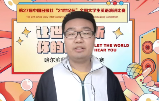 (杨胜男/文)5月7日,第二十七届可口可乐杯21世纪全国英语演讲比赛哈尔滨师范大学赛区决赛在线上举行,经过角逐,2019级英教九班李程好和2020级英教二班吕卿源脱颖而出,获得比赛特等奖,将代表学校参加黑龙江省决赛。