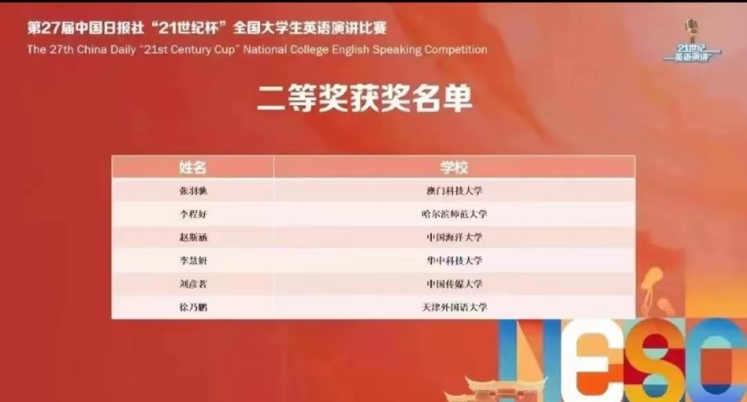 中国日报社“21世纪杯”全国英语演讲比赛创办于1996年,由中国日报社主办、21世纪英语教育传媒承办,是每年在英国伦敦举办的国际公共英语演讲比赛(International English Speaking Competition)中国区选拔赛,迄今已分别在北京、上海、香港、南京等城市举办了二十七届。“21世纪杯”全国英语演讲活动旨在践行社会主义核心价值观,全面培养青少年公众表达能力以及综合素养,切实提高中国青少年学生的跨文化交流能力。此次比赛是自赛事举办以来,我校选手第五次在全国决赛中取得佳绩。