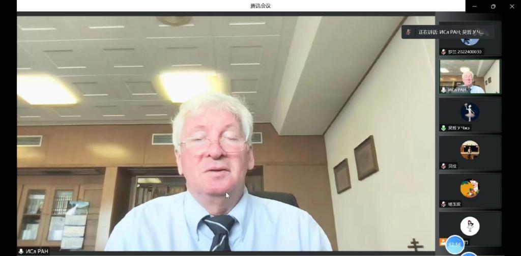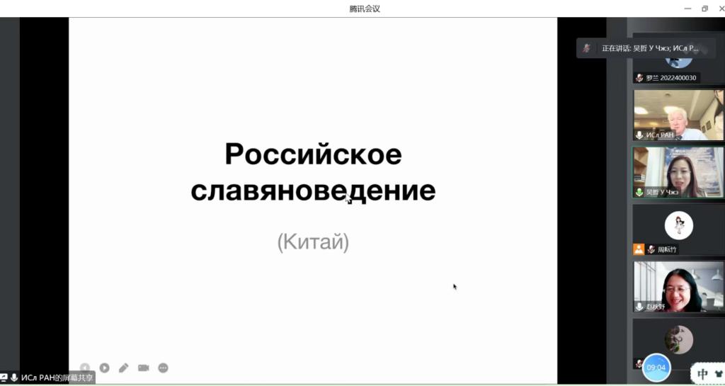 (罗兰/文)为加强我校外国语言文学一级学科博士学位点“国别与区域研究”方向建设,推动国内斯拉夫学学科构建,与国际顶尖院所联合培养斯拉夫学高层次人才,服务“一带一路”“龙江丝路带”“黑龙江自贸区”“哈新区”建设及中俄全面合作,2022年10月13日,斯拉夫语学院及教育部国别和区域研究中心“哈尔滨师范大学斯拉夫国家研究中心”邀请俄罗斯科学院斯拉夫学研究所所长К.В.尼基弗罗夫教授进行了题为《История российского славяноведения(俄罗斯斯拉夫学史)》的线上学术讲座。讲座由斯拉夫语学院副院长吴哲教授主持,斯拉夫语学院院长、博士生导师赵秋野教授以及来自我校外国语言文学学科和国内部分高校的二百余名硕博研究生及教师参加了讲座。