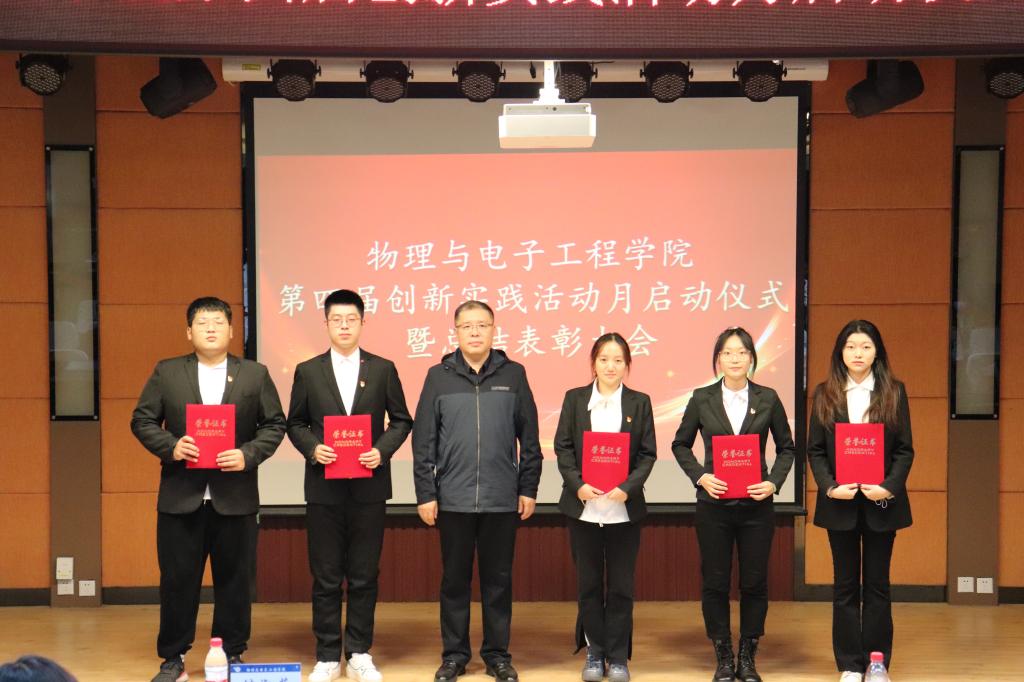 为进一步推动创新实践教育工作开展,激励学生踊跃参加创新实践活动,积极营造开放、创新的良好氛围,10月26日下午,物理与电子工程学院在科学会堂一楼报告厅举办第四届创新实践活动月启动仪式暨总结表彰大会。物理与电子工程学院党委书记邓铁男、院长李林、副院长付淑芳以及部分师生代表参加本次活动。本次活动由物理与电子工程学院党委副书记姜雪娥主持。