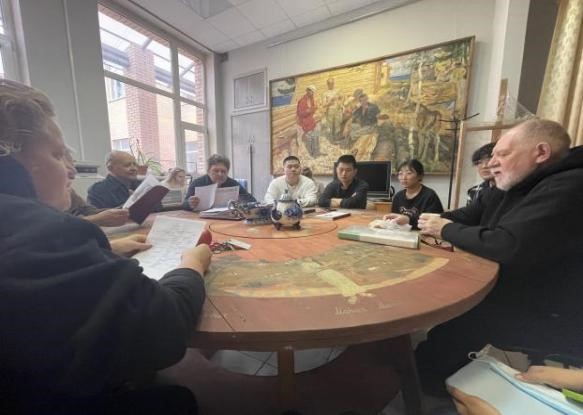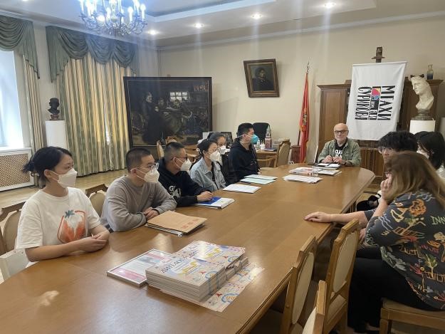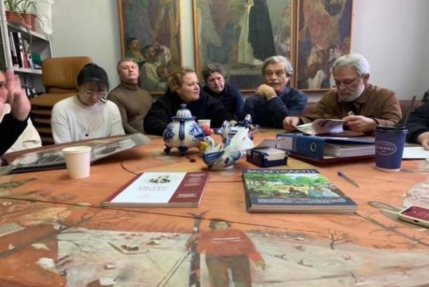 莫斯科时间11月11日,国际美术学院首批赴俄留学生师生见面会在莫斯科国立苏里科夫美术学院举行,院长柳巴文、副院长伊戈里携苏霍维茨基、萨拉霍娃等二十余名俄方导师与国际美学学院2021级研究生进行了交流座谈。