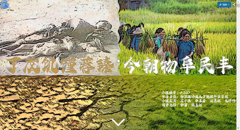 团队负责人左小康首先对参赛作品《丁戊饥馑荐臻·今朝物阜民丰》从作品背景、作品内容及作品创作思路三方面进行详细的讲解,然后根据赛事情况对参赛流程等做了经验分享,并指出:第一要科学组建团队,选择经验丰富的指导老师;第二要查阅相关资料和搜集数据,确定比赛主题;第三,团队成员之间要定期总结,通力合作,直至提交作品。只有这样,他们的作品才能在全国566项作品中脱颖而出,获得一等奖(一等奖共13项)。