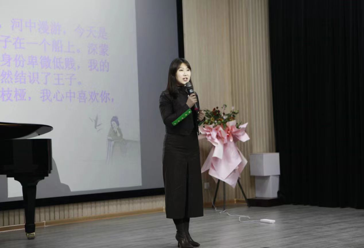 何亚男以“论文化背景与潜台词的引导对歌曲情感表达的重要性”为主题,用认真的态度、高昂的情绪、专业又亲切的口吻,呈现了激情洋溢的一期“音微课堂”。理论与实例并举,教师和学生同唱,讲座使同学们享受到一场极具魅力的视听盛宴。何亚男介绍了什么是歌曲文化背景和潜台词,随后以歌曲《越人歌》为例引出了情感处理和表达要从旋律流动性出发、从歌曲的人物出发、从演唱者的自身出发。她还强调演唱时要注意通过背景分析设定人物形象、故事情节,通过潜台词引导达到歌唱音乐效果。何亚男与同学们分享了有效的学习方法,并再次强调了文化背景与潜台词对歌曲情感表达的重要性,二者缺一不可。