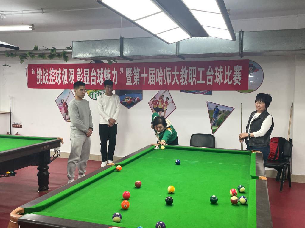 (赵慧宁/文)4月14日,由校工会主办,教职工台球协会承办的“挑战控球极限,彰显台球魅力”第十届哈师大教职工台球比赛经过四天的激烈角逐,在我校松北校区教职工活动中心圆满落幕。