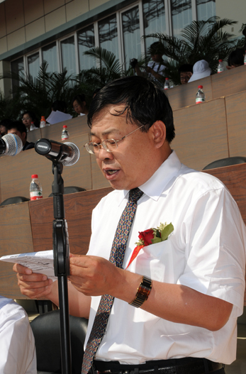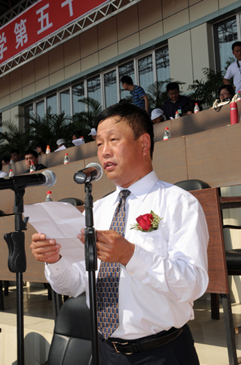 在庄严的升旗仪式后,党委副书记、校长王选章致开幕词。王选章对本届大会的召开表示祝贺,向致力于我校群众性体育活动开展的同志们表示崇高的敬意。王选章指出,本届运动会的召开,必将进一步激发广大师生拼搏进取的昂扬斗志,必将充分弘扬师大人团结友爱、奋发向上、不怕困难、敢于胜利的精神品质,必将极大地推动我校的强校建设,为我校的科学发展注入强劲的动力。