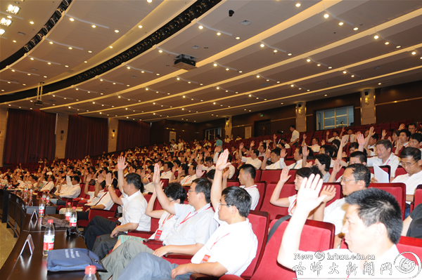 7月18日下午,我校双代会召开第二次全体会议,二百多名代表齐聚综合实验楼科技会堂,切实履行职责,圆满完成了各项议程,在激昂雄浑的校歌声中,第六届教职工代表大会暨第九次工会会员代表大会胜利闭幕。学校党政领导张少杰、王选章、王为正、王广明、李凤飞、王玉兰、曹百瑛、蒋晶杰、张国昭、赵旭光、马明出席会议。党委副书记王广明主持会议。