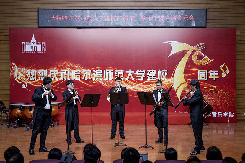 七十年史诗岁月如金,数代人奋斗刻骨铭心,是一代代哈师大人用“敦品励学、弘毅致远”的校训精神栉风沐雨、昂首阔步才换来了今日学校的生机蓬勃。春秋几度,桃李芬芳,母校恩情,山高水长,这里是放飞人生梦想最好的地方,是人生航船停泊的港湾,更是孕育一代代音乐学子成长的摇篮。本场音乐会精心筹备、制作精良、演绎精彩,倾注了全体音乐学院师生的心血。这场高水平的音乐会,用激动的、真挚的、美好的、震撼的音乐之声传递着音乐人对母校深切无限的祝福,描绘了新时代国家富强、民族昌盛的壮阔景象,讴歌了伟大的中国共产党,为母校70华诞献礼,为建党100周年添彩。