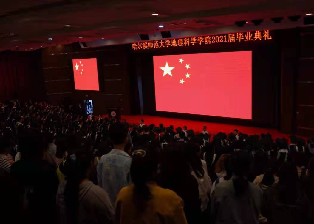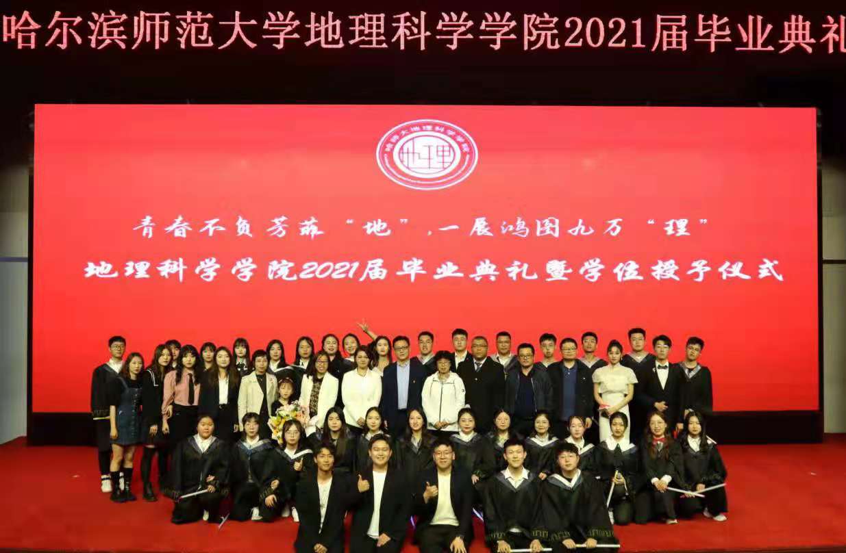 为深入贯彻落实《哈尔滨师范大学大学生思想政治教育“112349”工作模式实施方案》,培养学生社会责任感,增进学生爱校荣校情感,哈尔滨师范大学地理科学学院于2021年5月12日,在科学会堂隆重举行“青春不负芳菲‘地’,一展鸿图九万‘理’”2021届毕业典礼暨学位授予仪式。地理科学学院党委书记蒙国军、院长张冬有教授、副院长吴相利教授、副院长李苗副教授、学院部分教师和全体辅导员出席本次典礼,2021届全体毕业生以及各年级在校生代表参加。