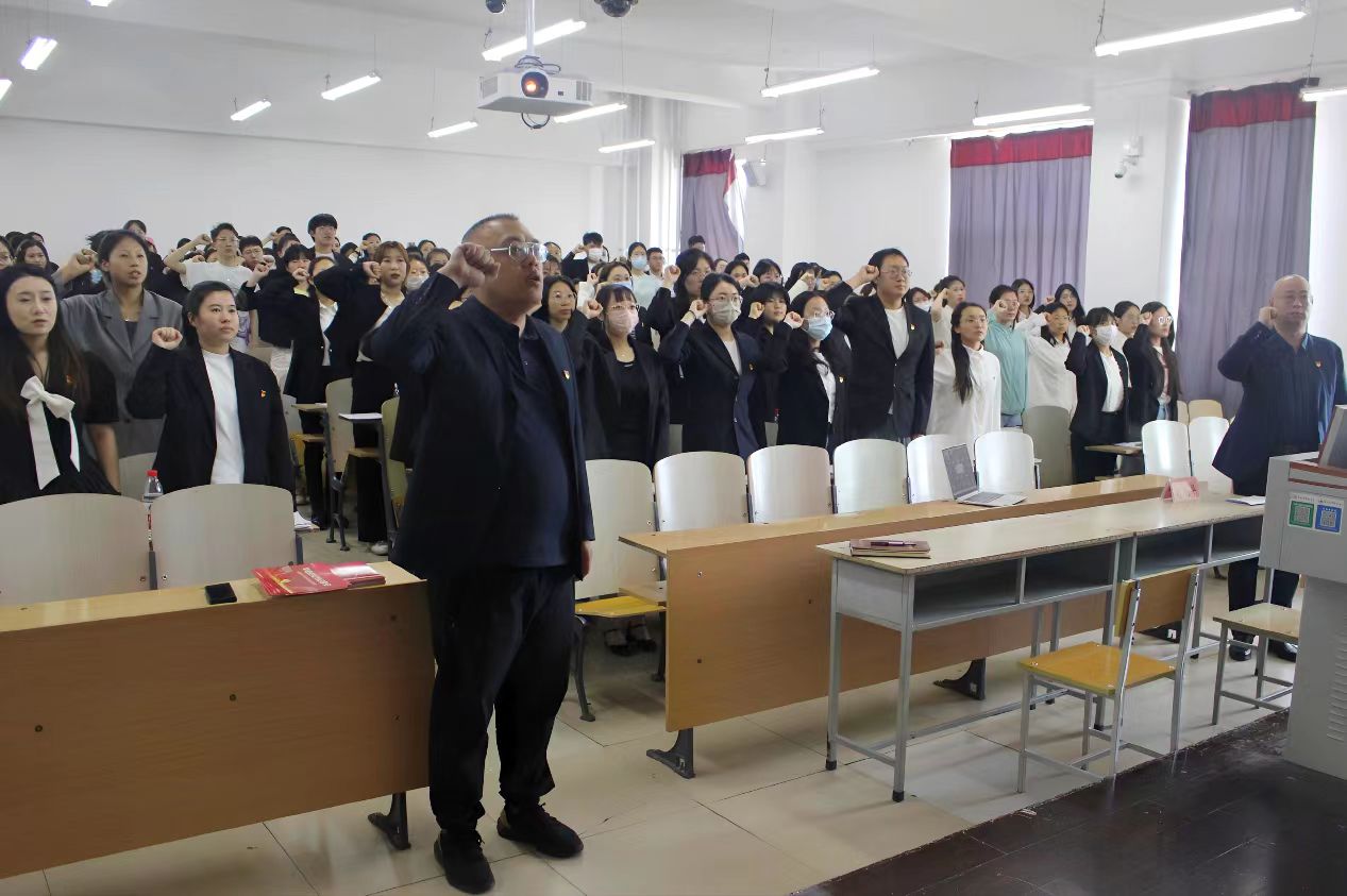 刘恩权带领全体2023届毕业生党员重温入党誓词,面向党旗,庄严宣誓:“我志愿加入中国共产党,拥护党的纲领,遵守党的章程……”在高昂嘹亮的宣誓声中,大家进一步强化党的观念,不忘初心、责任和使命,表达了为共产主义事业奋斗终身的理想和信念,铮铮誓言在会场久久回荡。重温入党誓词后,刘恩权引领毕业生党员重温入党志愿书及入党谈话,通过“三个重温”,强化毕业生党员责任感,让党性常存于心。