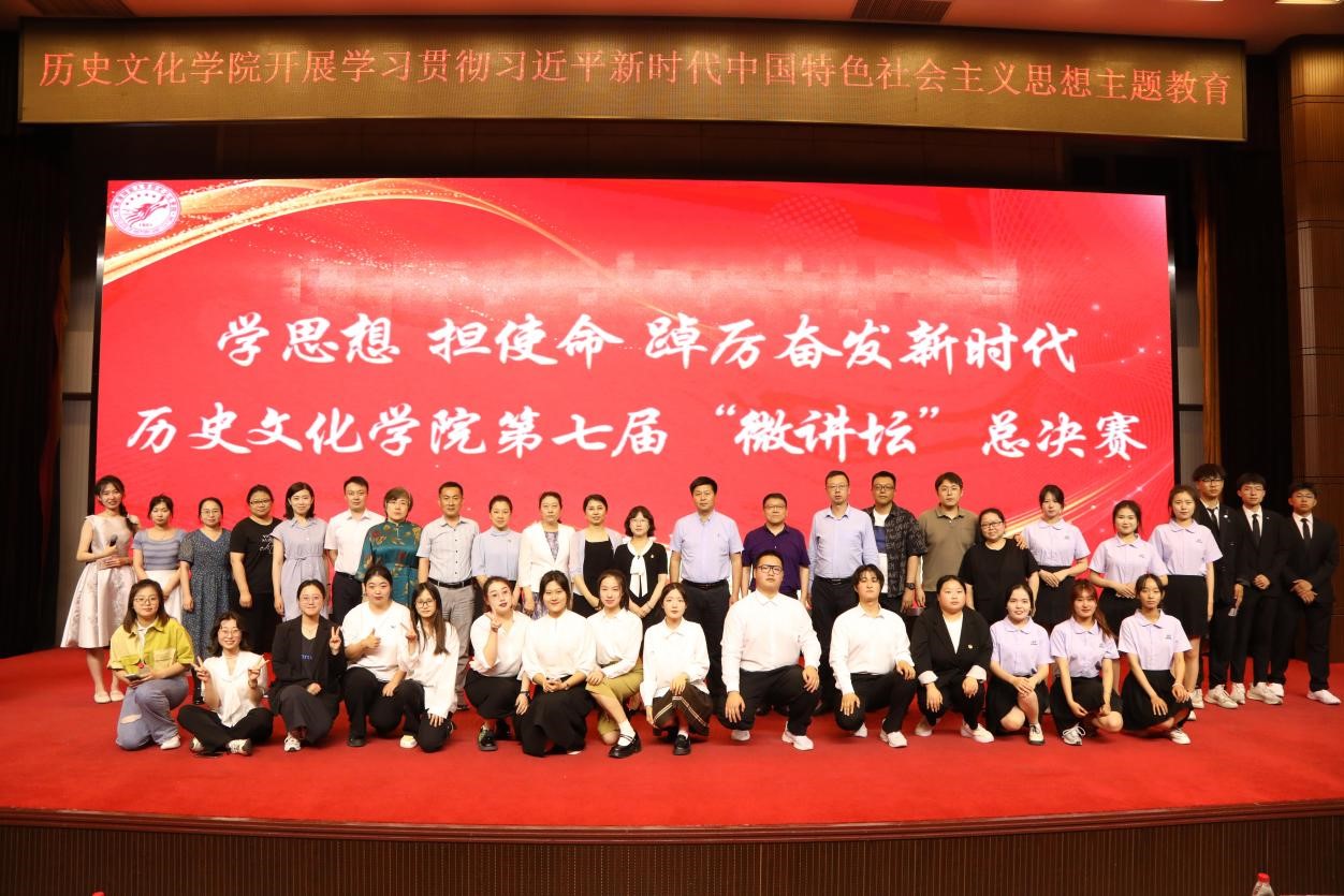 为深入学习贯彻习近平新时代中国特色社会主义思想,推动主题教育走深走实,强化广大青年的政治思想觉悟,赓续红色血脉,筑牢信仰之基,历史文化学院结合专业特色开展主题教育,6月15日在科学会堂举办“学思想担使命 踔厉奋发新时代”第七届微讲坛总决赛。校主题教育领导小组副组长、学校党委副书记李庆霞,校主题教育第二指导组成员、教务处副处长李苗,学校主题教育第二指导组成员、高教研究与教学质量评估中心科长李小雨,学院党委书记徐振岐,院长李淑娟,党委副书记李斌,副院长杨超,副院长孙瑜,学院全体党支部书记,全体辅导员,教师代表和2021级、2022级全体学生参加本次活动。