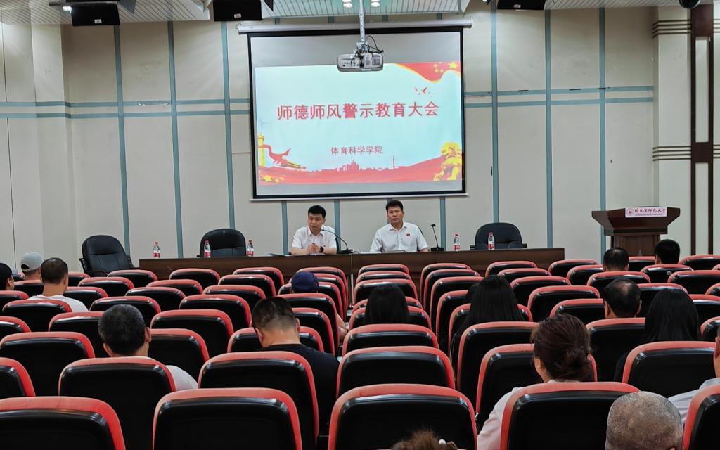 为严格落实学校党委关于师德师风建设的要求和会议部署,切实加强党对学院教育工作的全面领导,把师德师风建设作为学院意识形态和政治生态建设的重点任务,充分发挥反面典型案例的教育、警示、震慑作用,、7月6日,体育科学学院在体育馆新闻报告厅召开师德师风警示教育大会,领导班子成员、全体教师参加了会议,会议由党委书记韩大伟主持。