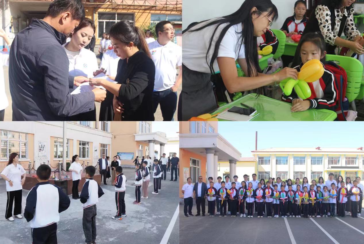 在帽儿山镇党委的支持下,实践团与帽儿山镇中心学校全校师生共同举行升旗仪式。实践团指导教师、学生代表与杨宝林校长、郝泰柱副校长、侯晖副校长、杨丽副校长及多位教师代表进行座谈交流。座谈会上,双方详细介绍了各自学校的发展历程、建设情况等。教育科学学院实践团充分发挥师范院校人才优势与科研优势,就帽儿山镇中心学校的实际需求与帽儿山镇中心学校学生培养、教师专业发展等方面进一步深化合作达成共识。实践团成员充分发挥教育专业特长,精心准备了中秋班会+益创工作室“益堂好课”教学,利用专业优势开展理论知识与乡村实践相结合的生动课堂;通过“气球花教学”,带领孩子们亲自动手制作精美的气球花,在实操中锻炼孩子们的动手能力和创造力;“阳光彩虹小白马”课间操教学,更是将气氛推到高潮,同学们热情高涨,活力四射,在运动中收获了快乐与成长。在上述系列活动中,实践团队成员也深刻领悟到了办好人民满意教育的沉重责任,进一步强化了扎根乡村教育一线、发挥专业优势为振兴乡村教育积能蓄势的崇高使命。