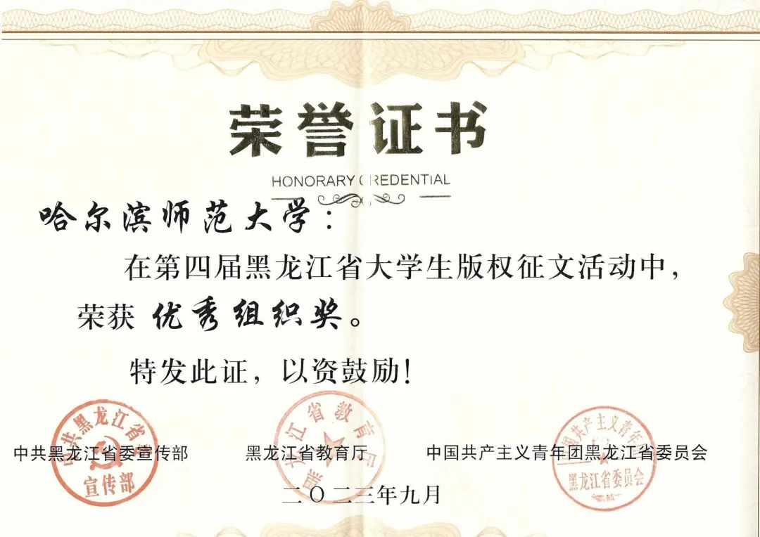 笔下有前途,心中有梦想。下一步,学校将以本次征文比赛为契机,继续推动版权意识的教育工作,让哈师大学子们,在成长的旅途里,向阳而生,策笔扬思,书写璀璨青春华章!