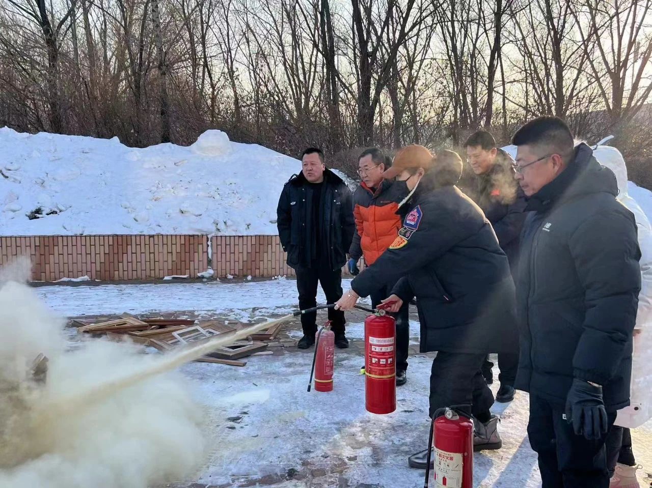 大会结束后,学院邀请保卫处消防科干警同志在体育馆通道里为全体教职工针对校园防火和应急救援疏散等问题,进行了详细讲解,着重对消防设施的用途使用等进行了实践操演并在体育馆的门口空地开展了消防演练,领导班子和教职员工都积极参与到活动中来。