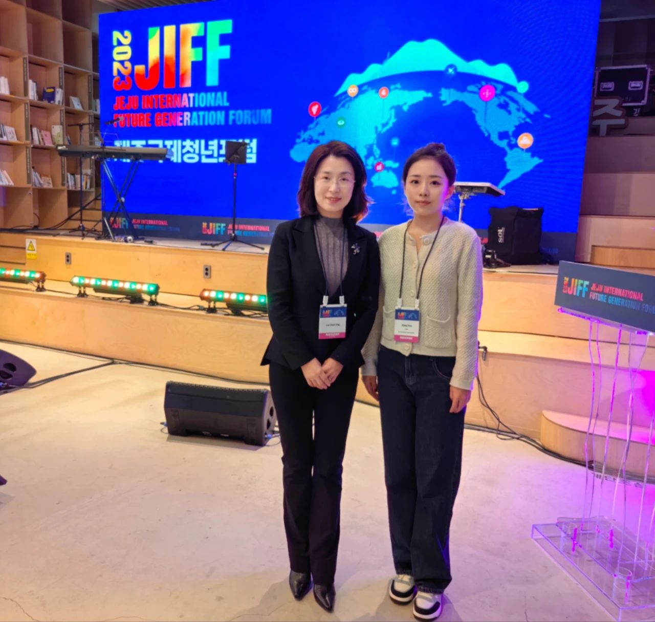 (周紫荆/文)11月24日至26日,由韩国济州特别自治道主办,联合国训练研究所(UNITAR)、济州国际培训中心协办的“2023济州国际青年论坛”在韩国济州岛举办,中国驻济州总领事王鲁新,韩国济州道知事吴怜勋、济州大学校长金一焕出席论坛并致辞。活动邀请了中国、韩国等13个国家、25个城市60余名青年代表现场参会。受主办方邀请、黑龙江省人民政府外事办公室委托,我校团委书记刘春玲、西语学院博士研究生周紫荆代表黑龙江省赴韩国参加“2023济州国际青年论坛”。