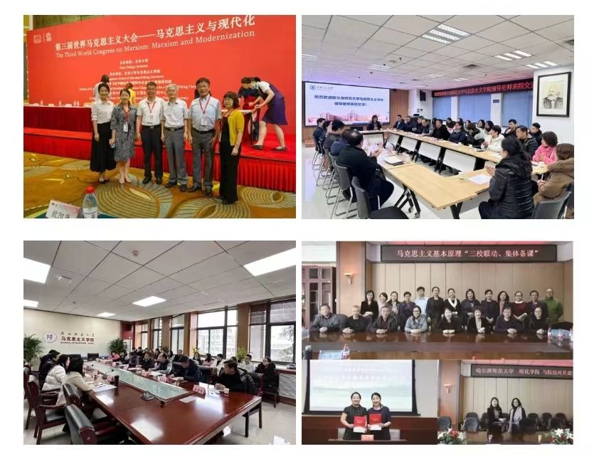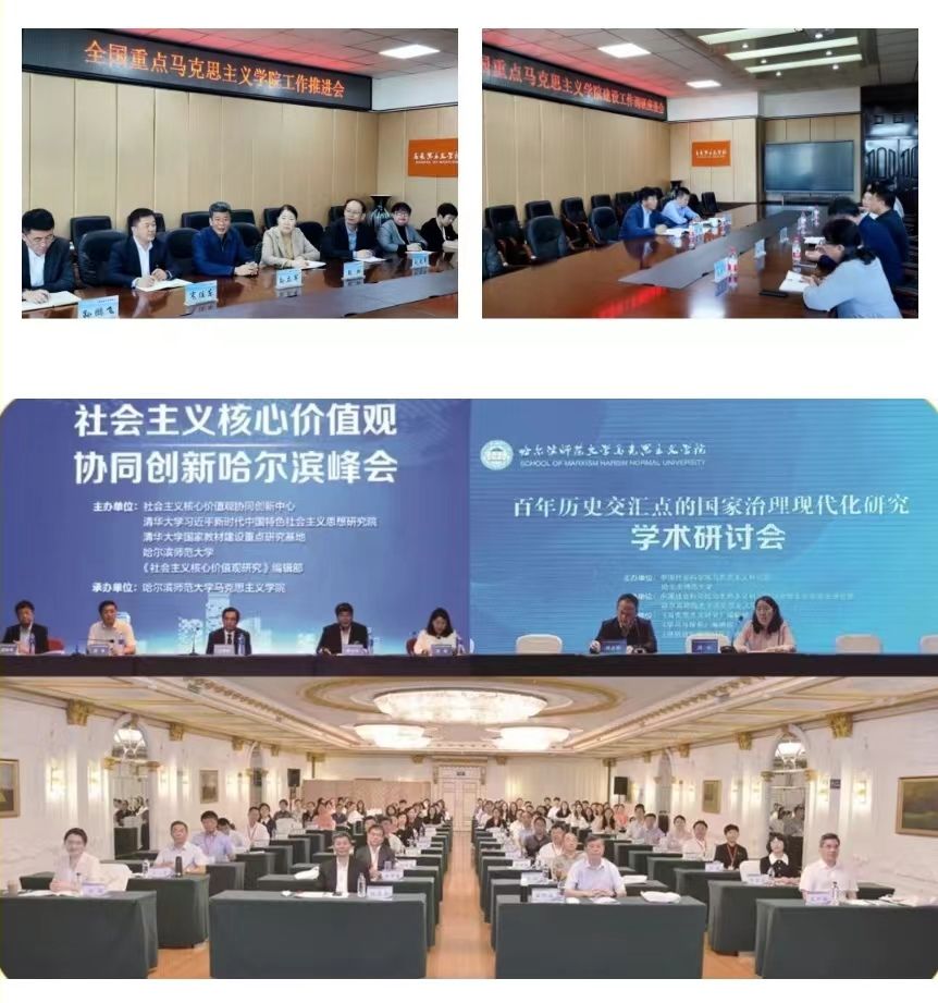 近五年来,学院先后主办“百年历史交汇点的国家治理现代化研究”“解放思想与全面建设社会主义现代化新龙江”“开辟马克思主义中国化时代化新境界”等高端学术会议,围绕重大理论和现实问题进行研讨,深化教师对系列理论问题的理解;先后邀请国内外知名专家来院进行学术讲座,拓宽思政课教师的理论视野。学院借助全国高校思政课“手拉手”集体备课中心(哈师大-黑龙江),面向黑龙江省开展16期“手拉手”集体备课活动,与来自国内、省内的思政课教师共同探讨思政课教学,有效推动了学校乃至全省思政课教学的内涵式发展。2023年集体备课中心承办教育部全国高校思政课教学展示(黑龙江省赛区)备赛磨课“云上大练兵”活动,受到全国思政课教师的广泛关注,观摩人次达到20000+;学院发挥示范引领作用,与黑龙江东方学院、绥化学院、大庆师范学院等高校马院开展结对共建活动,多次组织来自哈尔滨市第三中学、哈尔滨市第一中学、大庆实验中学、哈尔滨市教研院等学校的思政课教师开展座谈交流,各学段教师共策学段衔接、共划育人合力,为推动黑龙江省大中小学思政课一体化建设贡献了力量。
