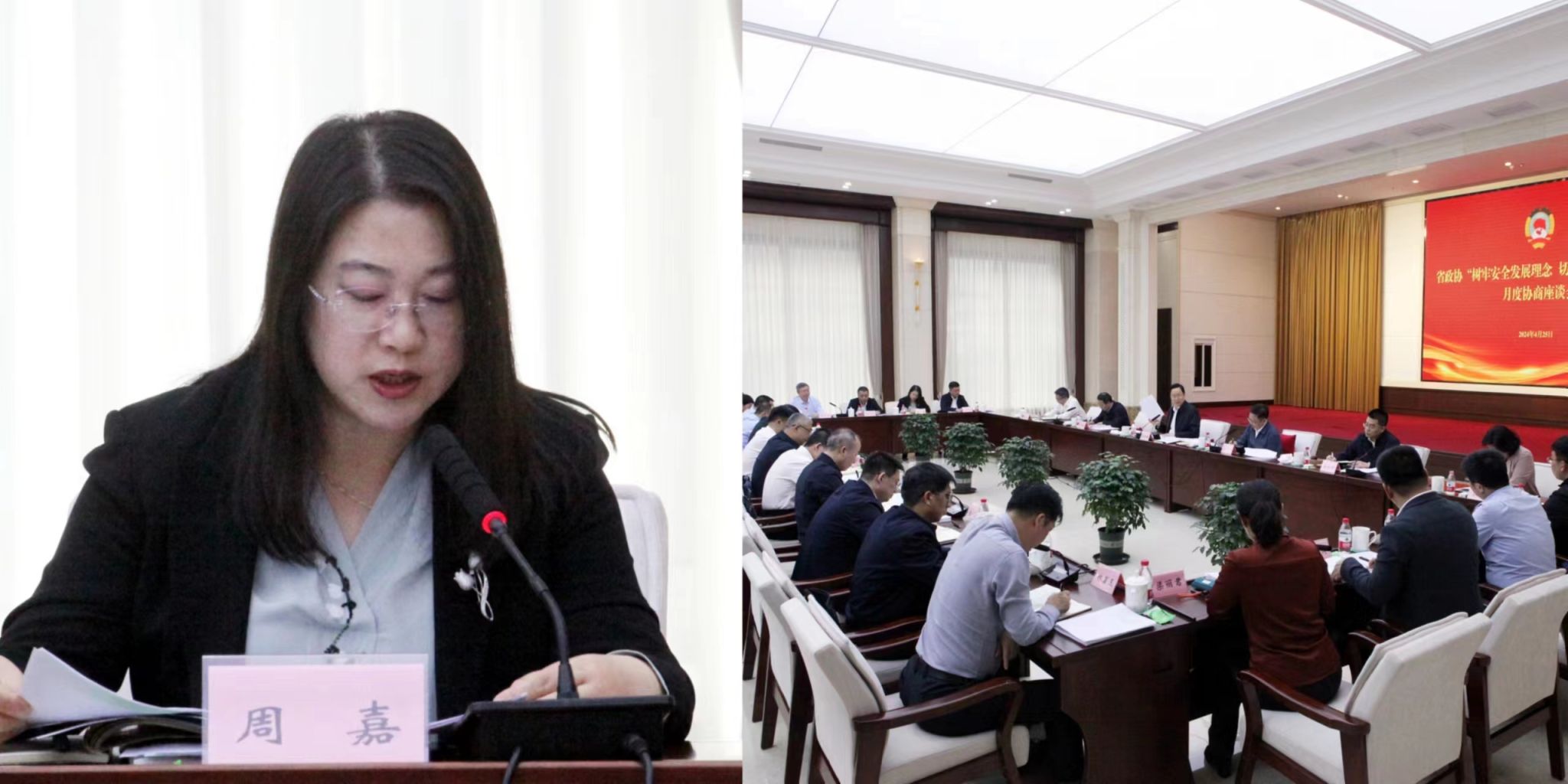 (任凯/文)4月25日,省政协召开“树牢安全发展理念,切实加强本质安全”月度协商座谈会。省政协主席蓝绍敏出席会议并讲话。我校省政协委员、九三学社哈师大委员会主委、地理科学学院副院长周嘉参加会议并作发言。