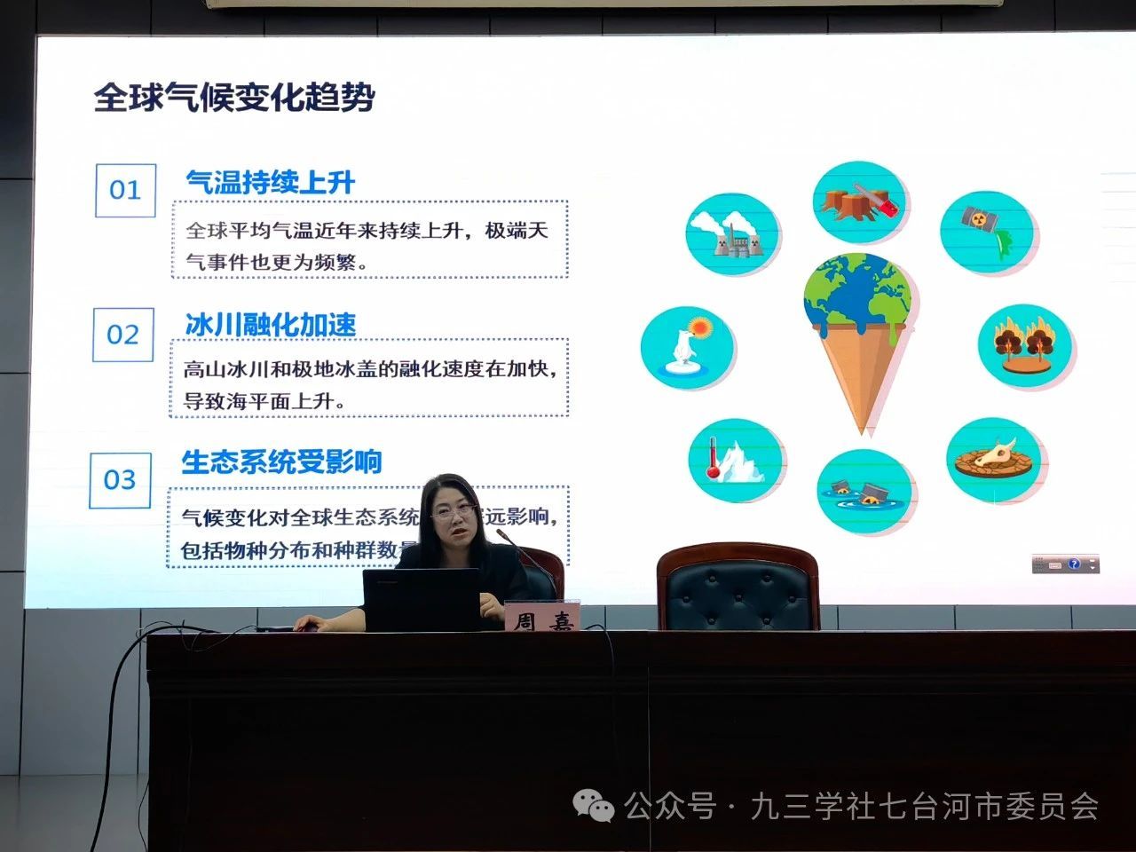(孙亚男/文)6月26日,“九三学社中央院士专家科普行”科普讲座在七台河职业学院举行。七台河市人大常委会副主任、九三学社市委主委李长春主持活动。九三学社中央科普工作委员会委员、九三学社黑龙江省科普工作委员会主任、我校地理科学学院副院长周嘉教授受邀作专题讲座。九三学社哈尔滨师范大学委员会文科支委会主委孙亚男参加活动。