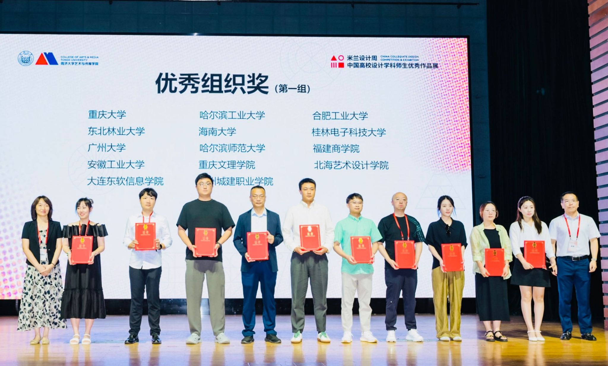 (贾亦男/文)7月27日,第八届米兰设计周中国高校设计学科师生优秀作品展颁奖典礼暨全国高校艺术设计实践教学论坛在同济大学举行。中国高等教育学会副会长姜恩来、同济大学党委副书记刘润出席并致辞,同济大学本科生院、艺术与传媒学院负责人以及来自全国的获奖高校近500名师生参加活动。我校传媒学院作为黑龙江赛区的承办单位,负责所在赛区的赛事组织、宣传、作品征集及评审工作。数字媒体艺术系贾亦男教授作为黑龙江赛区组委会秘书长参加了此次活动。
