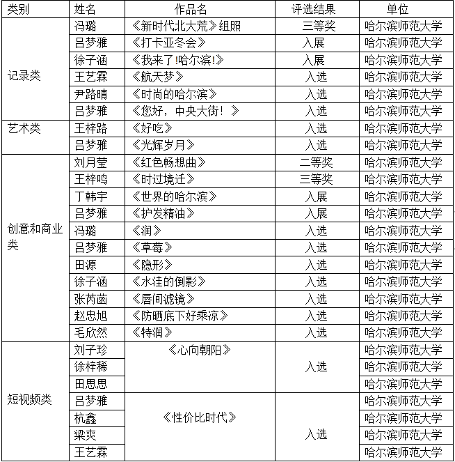 我校传媒学院影像艺术系有19名学生21个作品入选展览,其中获得二等奖1个、三等奖2个,入展作品4个、入选作品14个。
