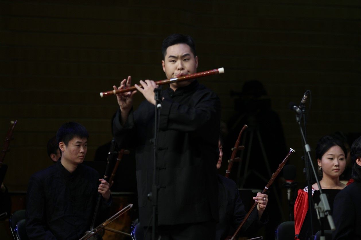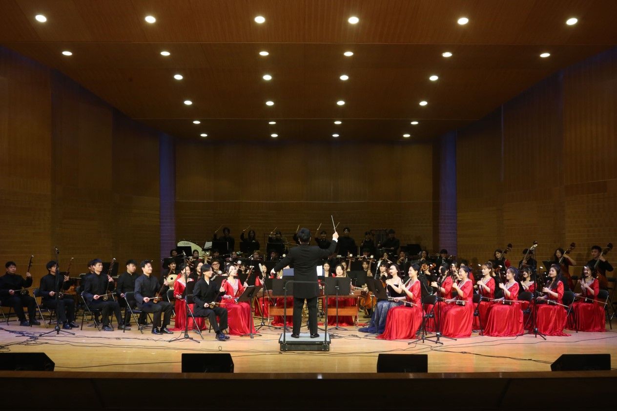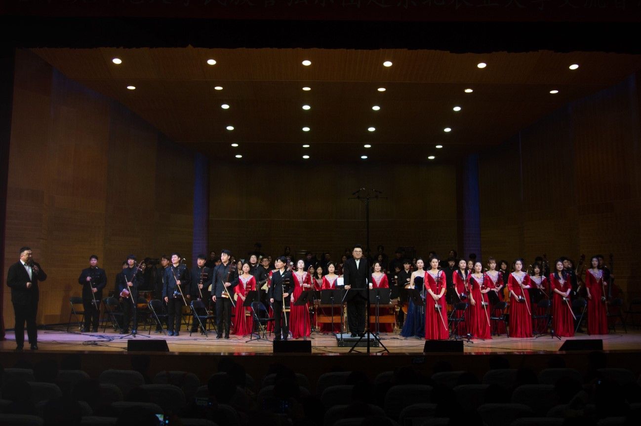 (王恩亮/文)岁物丰成,丹桂飘香;余音绕梁,华章典藏。为庆祝新中国成立七十五周年,弘扬中华民族传统文化,展现民族音乐的风韵,增进省内高校艺术交流,10月16日晚,我校音乐学院民族管弦乐音乐会在东北农业大学音乐厅隆重上演。