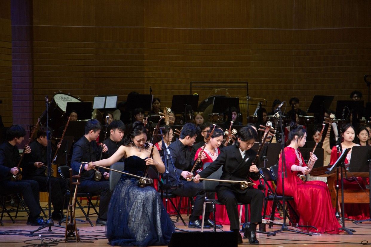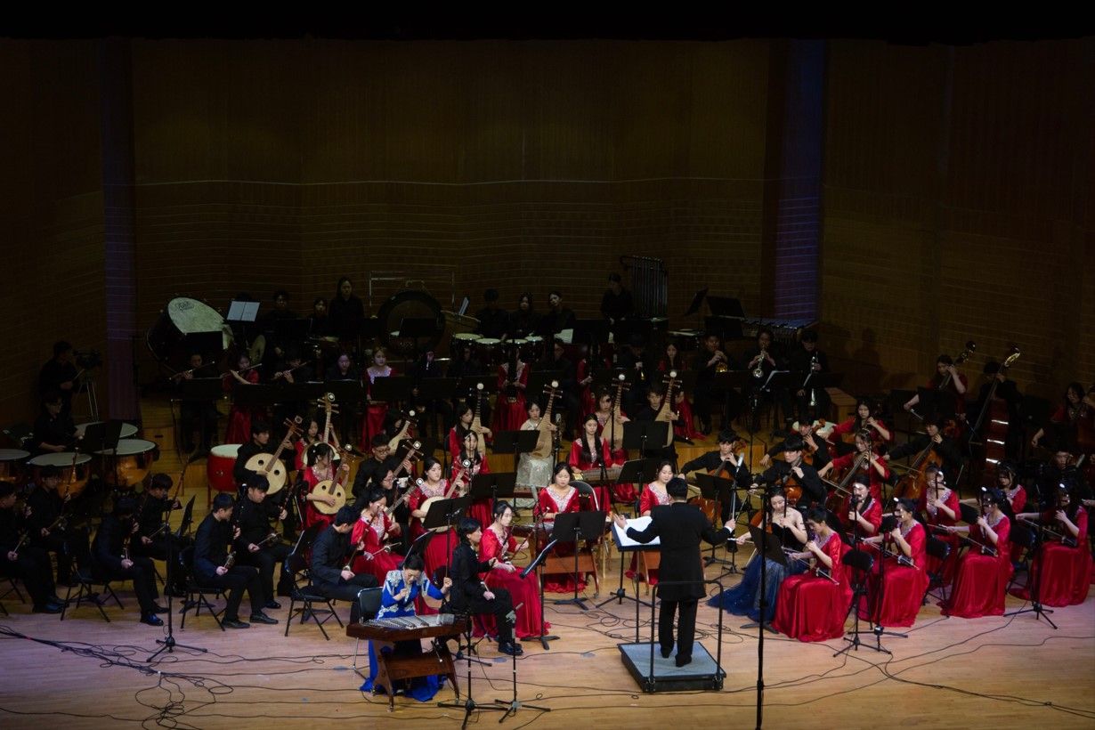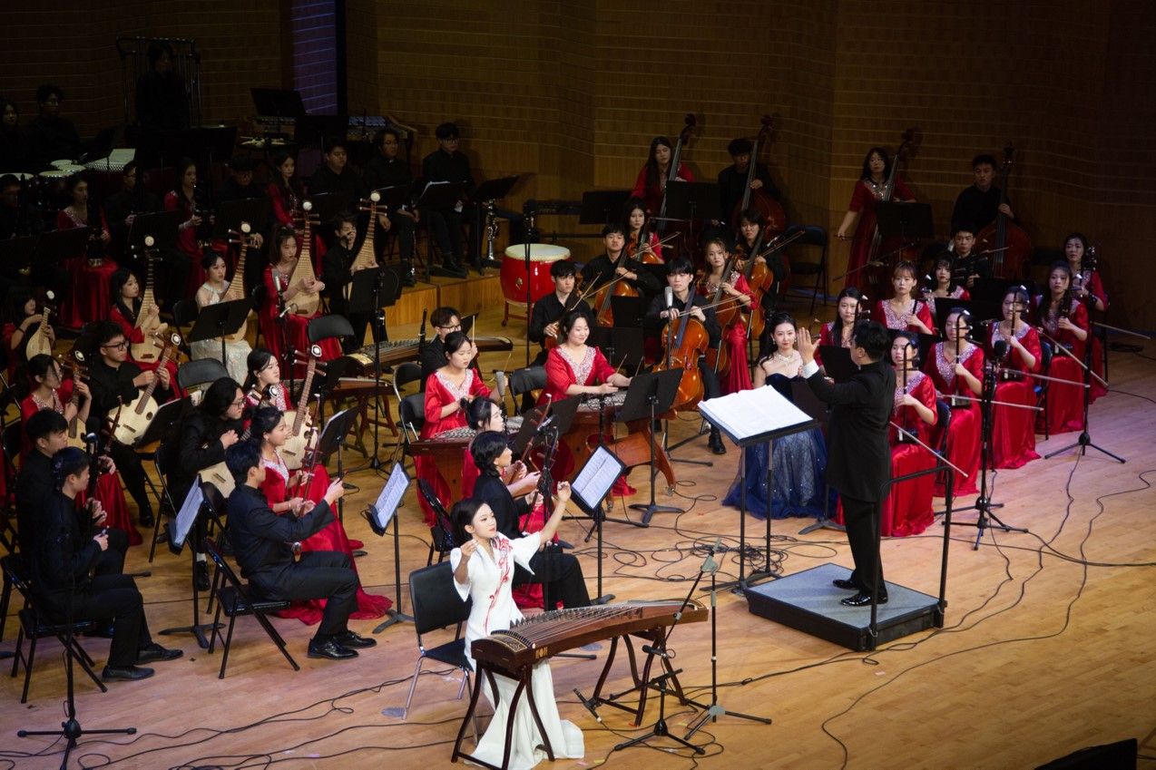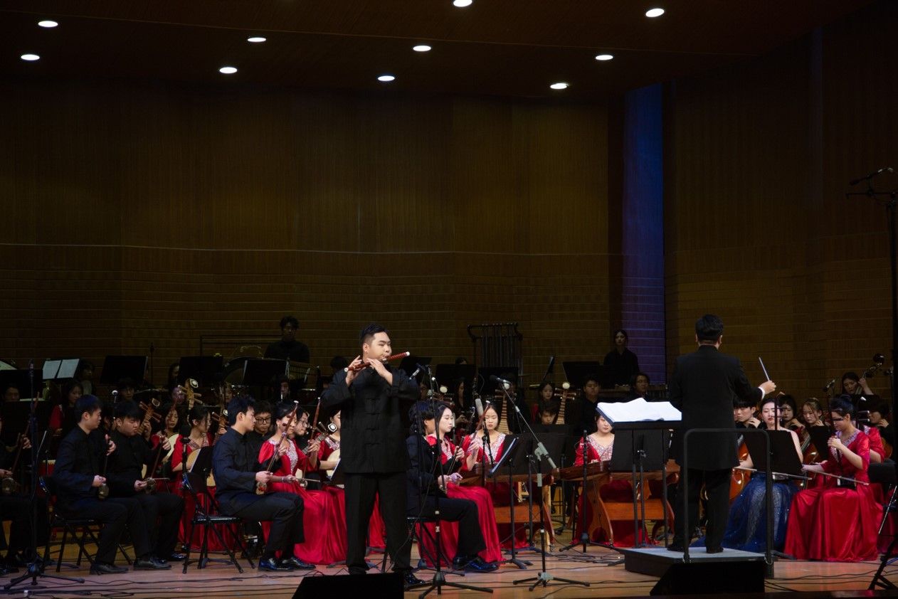 (王恩亮/文)岁物丰成,丹桂飘香;余音绕梁,华章典藏。为庆祝新中国成立七十五周年,弘扬中华民族传统文化,展现民族音乐的风韵,增进省内高校艺术交流,10月16日晚,我校音乐学院民族管弦乐音乐会在东北农业大学音乐厅隆重上演。